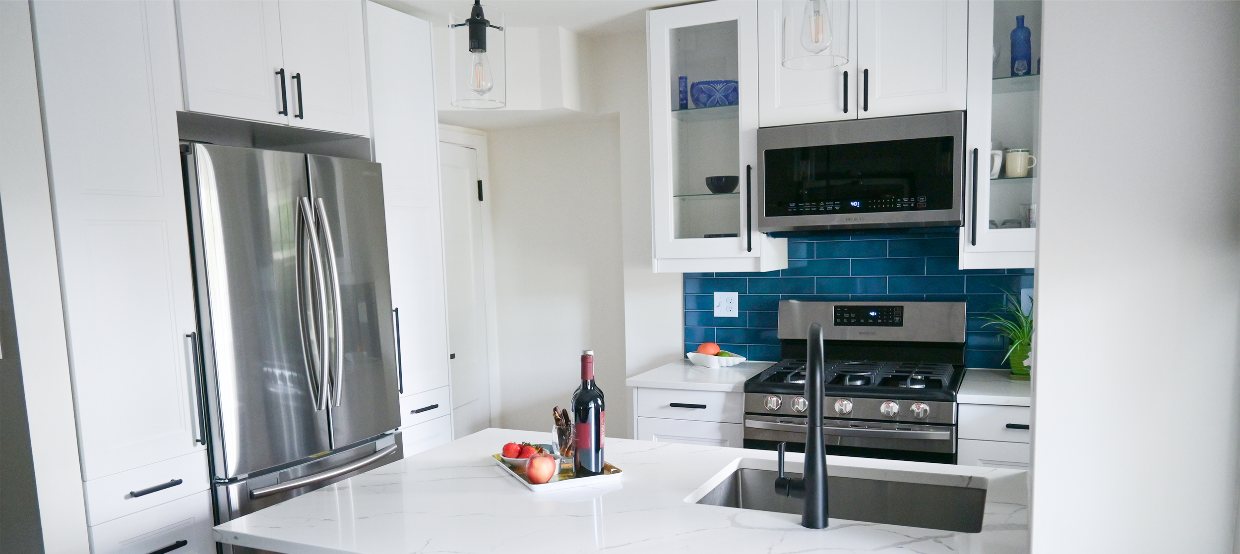 This classic 1940s row house with its original compact kitchen was ready for a thoughtful transformation. The client needed improved functionality, better storage, and a look that aligned with her preference for clean, modern design. The remodel maximized every inch with full ceiling-height cabinetry, durable quartzite countertops, and upgraded modern appliances. The client’s favorite color, blue, provides a pop within the design, creating a streamlined and modern kitchen that delivers everyday livability.